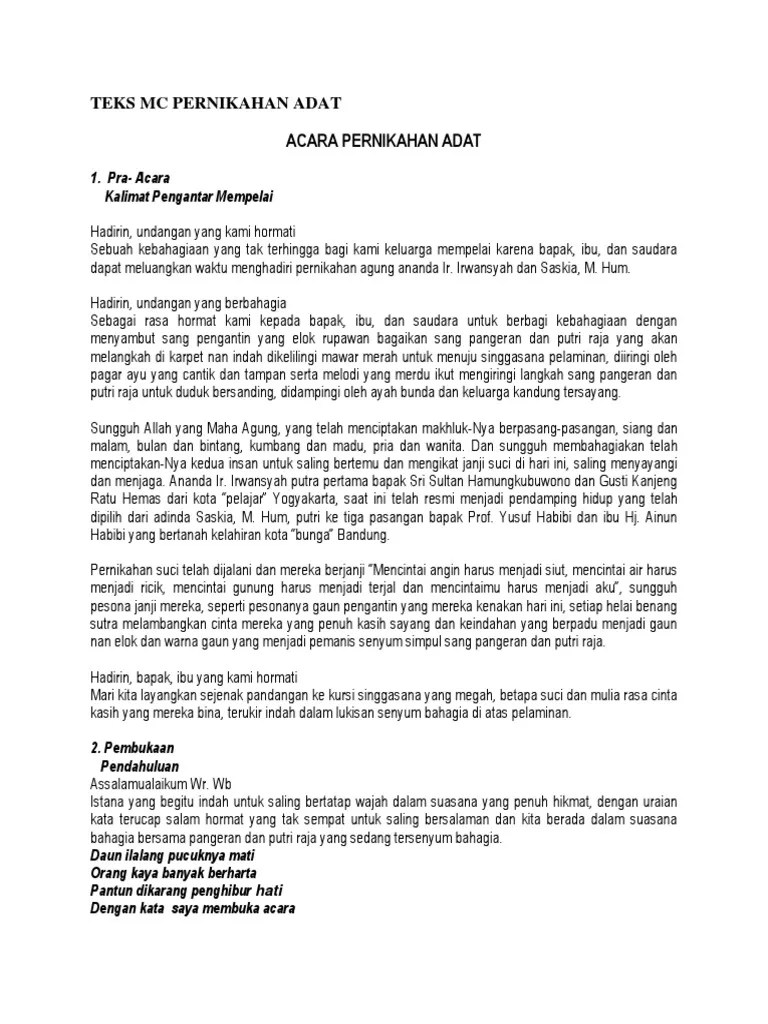 Teks mc ngunduh mantu bahasa sunda. 30 contoh kalimat pembukaan pidato dan penutupan arab. Contoh teks pranatacara bahasa jawa singkat lengkap. Contoh naskah mc dalam susunan acara akad nikah pernikahan asia. Ulasan tentang teks pembawa acara pernikahan bahasa jawa.