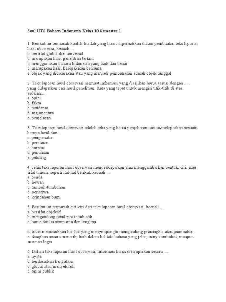 Soal Uts Bahasa Indonesia Kelas 10 Semester 1 : Soal Uts Bahasa Indonesiasma Kelas X Ktsp / The writers are reliable, honest, extremely knowledgeable, and the results are always top of the class!. Indonesia kelas xii semester ganjil k13 sma/ma/smk/mak/sederajat edisi revisi postingan kali ini, berisikan materi soal mulai dari bab 1, memahami surat lamaran pekerjaan sampai bab 2, cerita sejarah indonesia. Lengkap dengan kunci jawaban latihan soal uts dan pts pilihan ganda. Terima kasih itulah soal uts/ pts k13 tema 2 kelas 3 semester 1 kd : 's services, on the other hand, is a perfect match for all my written needs. 09.06.2020 · soal latihan bahasa indonesia kelas 1 sd mi semester 2 2021 pendidikan dasar merupakan awal yang sangat penting dalam pemahaman berbahasa indonesia.